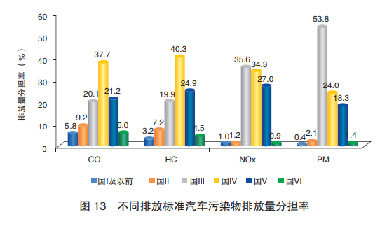 從排放標(biāo)準(zhǔn)上看,國(guó)Ⅲ、國(guó)Ⅳ、國(guó)Ⅴ4項(xiàng)污染物排放分擔(dān)率都相對(duì)高一些。