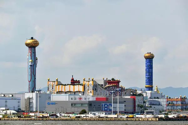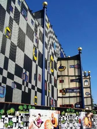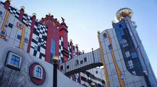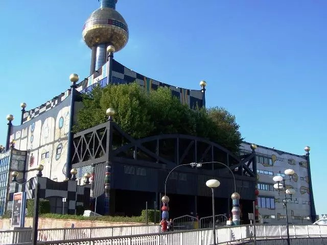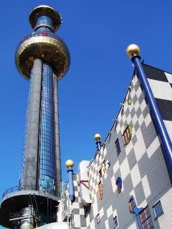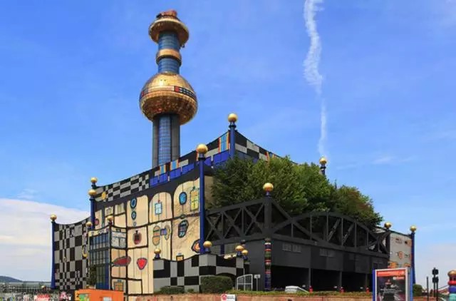 景觀設計:這座建筑物是奧地利有名的藝術家、建筑設計師百水先生的杰作。工程從1988年至1992年進行了四年建成。居民遠遠就可以看見一個高高聳立的大煙囪,中部有一個碩大的金色球體,在藍天下格外醒目。這金色的圓形球體會讓人聯(lián)想到某明珠電視塔的旋轉餐廳,其實不然。這就是垃圾焚燒廠的控制室。色彩斑斕而充滿童趣的外墻立面,讓人感覺就像是一座童話城堡。 外墻面上隨意涂抹的卡通畫,有的是各種色彩的水果,有的是各種性能的用具,煞是可愛。