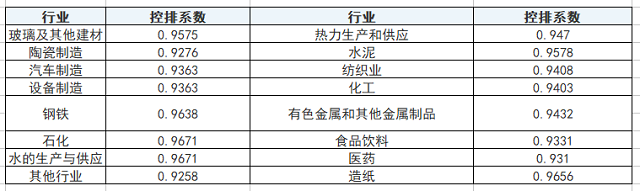 各行業(yè)控排系數(shù)