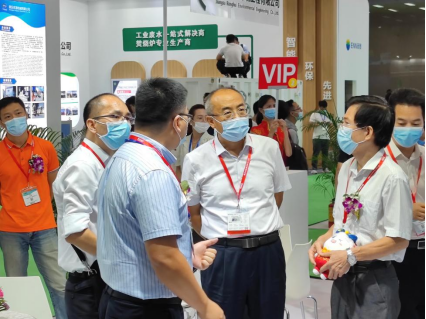 展會(huì)首日,廣東省人大環(huán)境與資源保護(hù)委員會(huì)副主任何真、廣東省生態(tài)環(huán)境二級(jí)巡視員鄧?yán)^勇等領(lǐng)導(dǎo)組成的貴賓參觀團(tuán)蒞臨朗坤環(huán)境展位參觀。