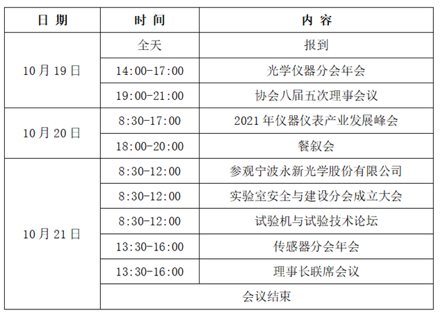 會議同期將舉辦理事長聯(lián)席會議、光學(xué)儀器分會年會、傳感器分會年會、實(shí)驗(yàn)室安全與建設(shè)分會成立大會、試驗(yàn)機(jī)與試驗(yàn)技術(shù)發(fā)展論壇,參觀寧波永新光學(xué)股份有限公司新廠。