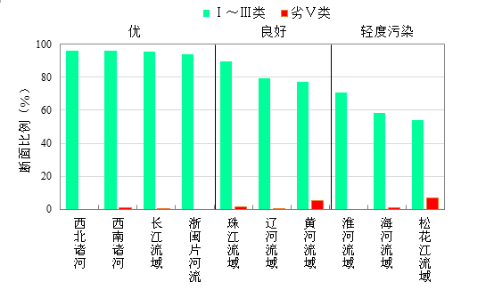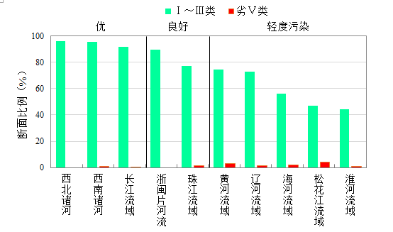 1-8月,長(zhǎng)江、黃河、珠江、松花江、淮河、海河、遼河等七大流域及西北諸河、西南諸河和浙閩片河流水質(zhì)優(yōu)良(Ⅰ~Ⅲ類)斷面比例為83.4%,同比上升0.9個(gè)百分點(diǎn);劣Ⅴ類斷面比例為1.2%,同比下降1.1個(gè)百分點(diǎn)。主要污染指標(biāo)為化學(xué)需氧量、高錳酸鹽指數(shù)和總磷。其中,西北和西南諸河、長(zhǎng)江流域和浙閩片河流水質(zhì)為優(yōu);珠江、遼河和黃河流域水質(zhì)良好;淮河、海河和松花江流域?yàn)檩p度污染。