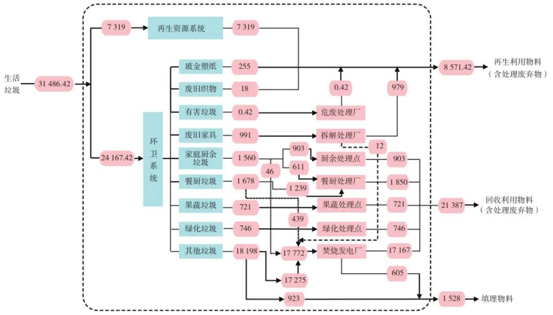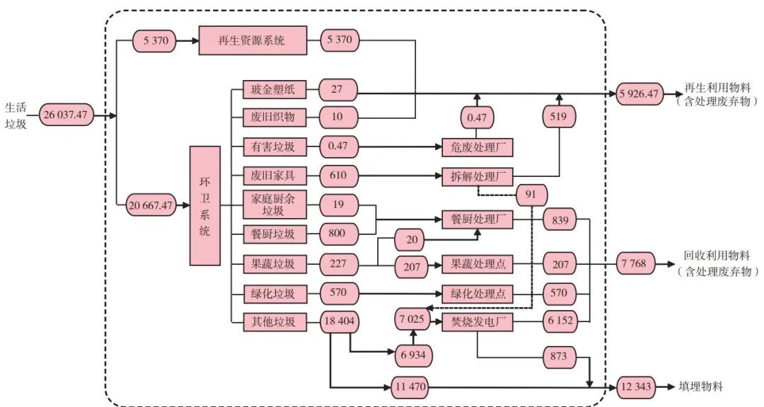 圖1 深圳市生活垃圾分類(lèi)系統(tǒng)的物質(zhì)流分析框架