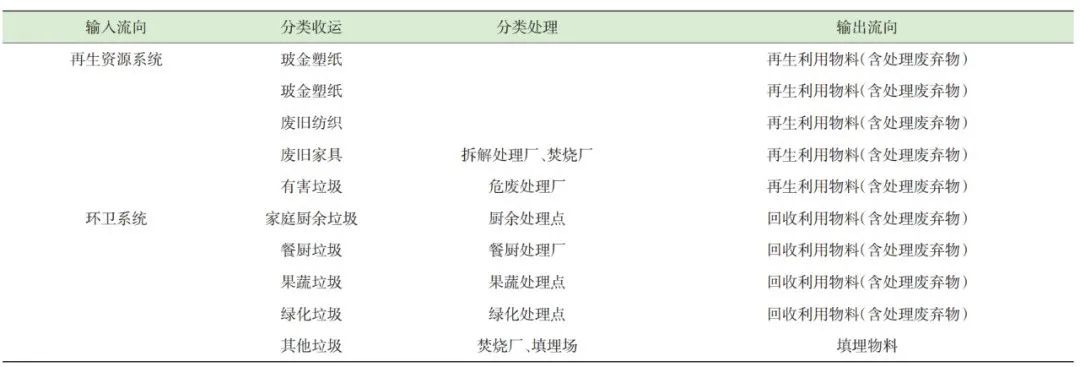 表1 深圳市生活垃圾分類(lèi)系統(tǒng)物質(zhì)流