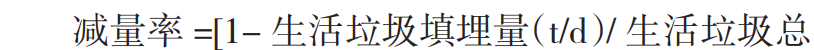 2)減量率:當(dāng)生活垃圾產(chǎn)生后,其減量化主要是指通過(guò)分類(lèi)收集、分類(lèi)處理等方式減少最終的填埋處置量。