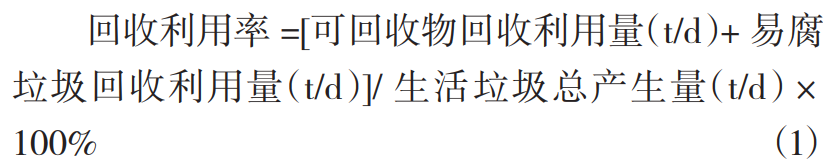 式中:可回收物包括分類(lèi)收集的玻金塑紙、廢舊織物和廢舊家具;易腐垃圾包括分類(lèi)收集的家庭廚余垃圾、餐廚垃圾、果蔬垃圾等。
