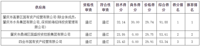 供應(yīng)商名稱:肇慶市高要區(qū)國有資產(chǎn)經(jīng)營有限公司(聯(lián)合體成員:肇慶市水務(wù)集團(tuán)有限公司,深圳前海經(jīng)緯投資管理有限公司)