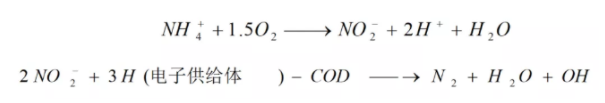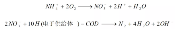 所以其生物脫氮過(guò)程比一般硝化—反硝化反應(yīng)進(jìn)程較快,脫氮效率高。其主要方程式: