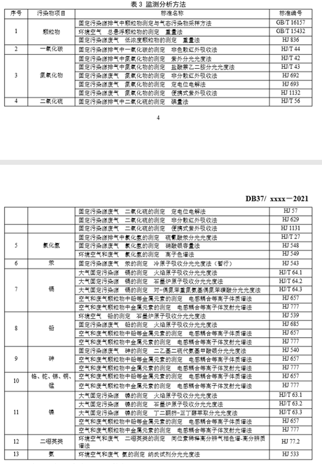 3.大氣污染物濃度的測定采用表3所列的標(biāo)準(zhǔn)方法。本標(biāo)準(zhǔn)發(fā)布實施后,有新發(fā)布的國家環(huán)境監(jiān)測分析方法標(biāo)準(zhǔn),如適用性滿足要求,也適用于本標(biāo)準(zhǔn)對應(yīng)污染物的測定。