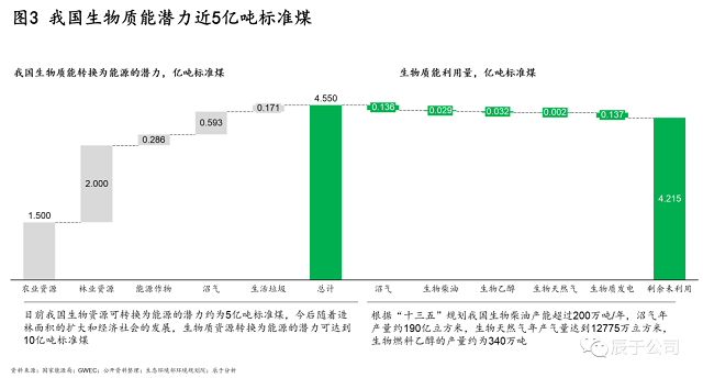 正因如此,我國(guó)生物質(zhì)能還處于發(fā)展的初級(jí)階段,潛力巨大。根據(jù)公開(kāi)資料測(cè)算,當(dāng)前我國(guó)生物質(zhì)能每年可以利用的量將近5億噸標(biāo)準(zhǔn)煤,相較之下目前已經(jīng)利用的量只有不到0.4億噸標(biāo)準(zhǔn)煤,生物質(zhì)能是一座待持續(xù)發(fā)掘的能源寶庫(kù),行業(yè)還有十幾倍的增長(zhǎng)空間。