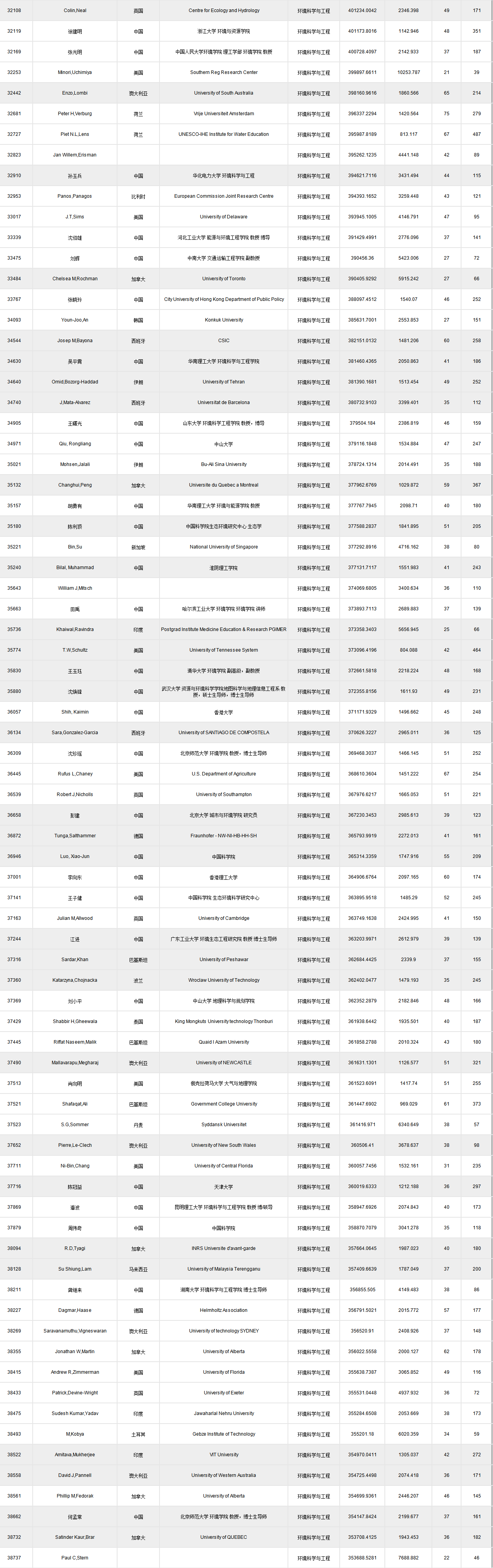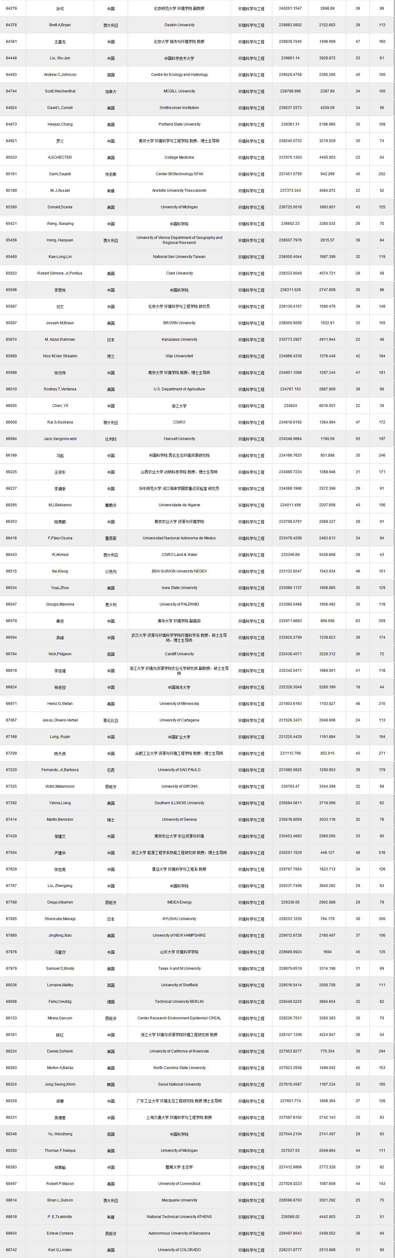 環(huán)境科學與工程類如下:(點擊查看原圖)
