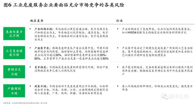 這不禁引起我們對(duì)這一市場(chǎng)的重新審視。通過(guò)對(duì)最新政策的解讀、對(duì)上游產(chǎn)廢企業(yè)的調(diào)研,以及與工業(yè)危廢企業(yè)的深入交流,我們?cè)诒緢?bào)告中仍將維持之前的判斷:相比其他細(xì)分市場(chǎng),有規(guī)模、有增速、盈利水平中上、行業(yè)集中度低的工業(yè)危廢市場(chǎng)仍然值得關(guān)注,只不過(guò)對(duì)后進(jìn)入者,當(dāng)前的競(jìng)爭(zhēng)環(huán)境確實(shí)“兇險(xiǎn)”,所面臨的四大挑戰(zhàn),讓他們想“彎道超車”變得困難重重:
