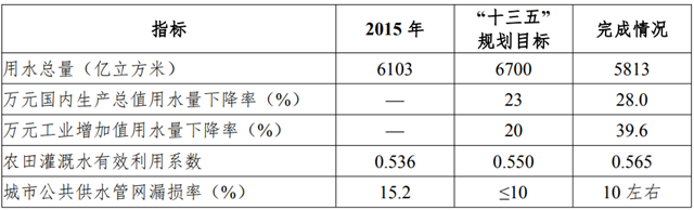 我國在“十三五”節(jié)水型社會建設(shè)主要目標(biāo)指標(biāo)完成情況,見下圖: