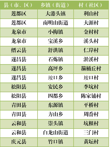 麗水市(15個(gè))