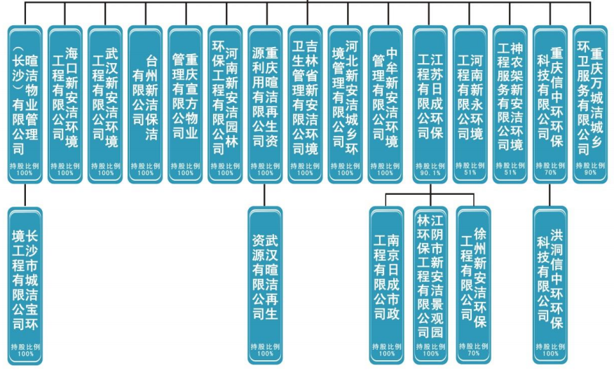 就在其宣布轉(zhuǎn)板消息不久,9月3日,北京證券交易所(下文簡稱“北交所”)注冊成立,11月15日將正式開市。據(jù)了解,北交所實行試點證券公開發(fā)行注冊制,由全國中小企業(yè)股份轉(zhuǎn)讓系統(tǒng)中的精選層整體平移而來,定位為“專精特新”中小企業(yè)直接融資服務,偏重服務創(chuàng)新型中小民營企業(yè)。這樣一來,對于環(huán)保產(chǎn)業(yè)中有機固廢處理、節(jié)能降碳裝備、資源循環(huán)利用等細分領域的科技創(chuàng)新驅(qū)動型中小企業(yè)來說,或許更有機會。而根據(jù)規(guī)則,屆時包括新安潔在內(nèi)的新三板市場精選層首批68家公司將全部平移進入北交所。但對于已經(jīng)進入轉(zhuǎn)板通道的新安潔來說,或許因為對北交所活躍度有所擔心,或許由于轉(zhuǎn)板箭在弦上不得不發(fā),也或許其對轉(zhuǎn)板成功率有更多的信心,所以北交所的設立并沒有打斷其轉(zhuǎn)板的計劃。9月 13日、29日、10月20日和11月3日,新安潔專門發(fā)布了轉(zhuǎn)板進展公告,稱創(chuàng)業(yè)板轉(zhuǎn)板工作仍然按計劃推進,并將在完成各項準備工作后向深圳證券交易所提起申報。從其所處的行業(yè)看,目前環(huán)衛(wèi)市場的格局已經(jīng)有了新的變化,市場整體的領先地位已經(jīng)被北京環(huán)衛(wèi)、僑銀環(huán)保、玉禾田、啟迪桑德、盈峰環(huán)境、北控城市服務、龍馬環(huán)衛(wèi)等新老環(huán)衛(wèi)企業(yè)穩(wěn)定占據(jù),一些領先企業(yè)開始向城市服務運營商轉(zhuǎn)型。在業(yè)務方面,新安潔的業(yè)務范圍已經(jīng)覆蓋了重慶、湖北、江蘇、河南、山東、湖南、安徽等全國12個省,重慶區(qū)域的業(yè)務占比約1/4。其中,“重慶市兩江新區(qū)生活垃圾分類”、“武漢市東西湖區(qū)生活垃圾分類”、“山東青州市城鄉(xiāng)環(huán)衛(wèi)一體化”和“河南汝南縣城鄉(xiāng)環(huán)衛(wèi)一體化”項目,入選了中國城市管理協(xié)會主辦的2018國際城市環(huán)境衛(wèi)生博覽會示范案例。▼新安潔公司結(jié)構(gòu)圖(截至2020年6月,來源:新安潔公告)此外,隨著這些年互聯(lián)網(wǎng)、物聯(lián)網(wǎng)、信息技術、智慧城市、AI等新技術在環(huán)衛(wèi)行業(yè)中應用越來越廣泛,新安潔也希望打造公司科技屬性,以全面實現(xiàn)環(huán)衛(wèi)智能化運營。