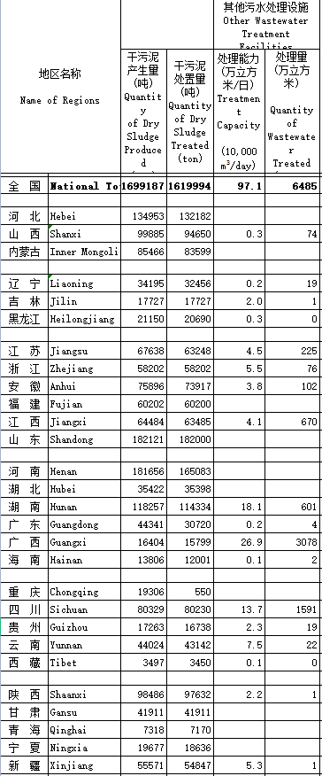 全國范圍內(nèi)對生活污水進(jìn)行處理的鄉(xiāng)3095個,占比34.87%,污水處理廠2170個,處理能力104.8萬立方米/日,污水處理裝置處理能98.80萬立方米/日,排水管網(wǎng)長度23536.98公里,年度新增2435.74公里。