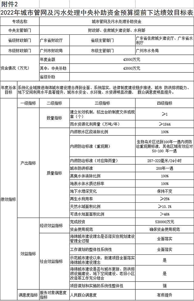 廣東省財政廳關(guān)于提前下達(dá)2022年中央城市管網(wǎng)及污水處理補(bǔ)助資金的通知