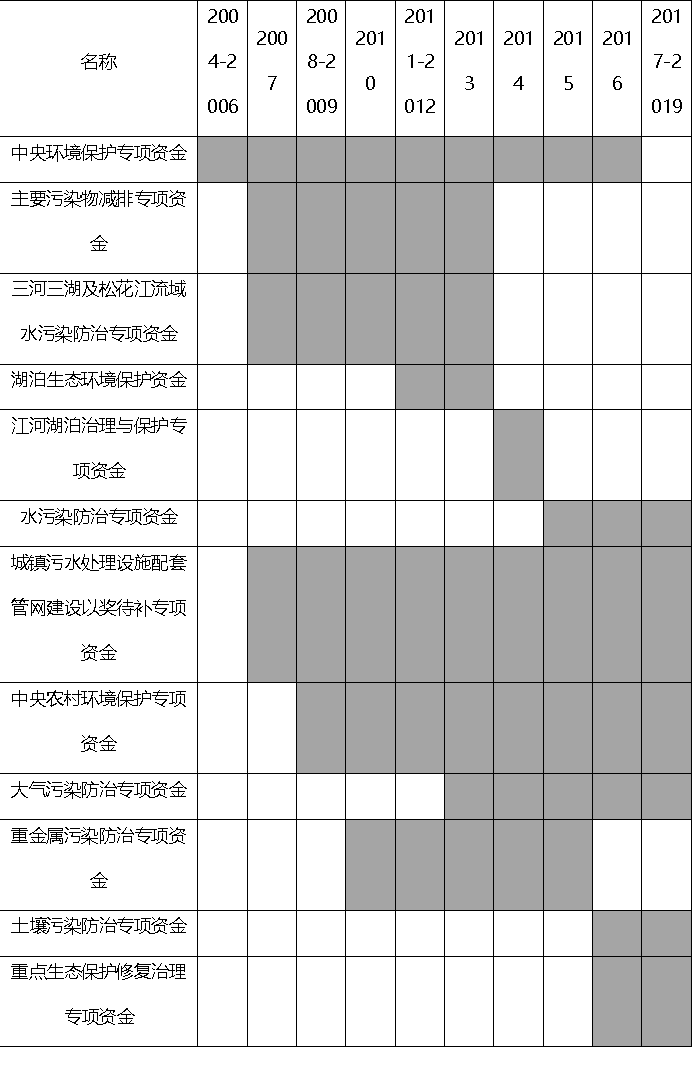 表3 中央層面環(huán)保專項資金設(shè)立調(diào)整狀況