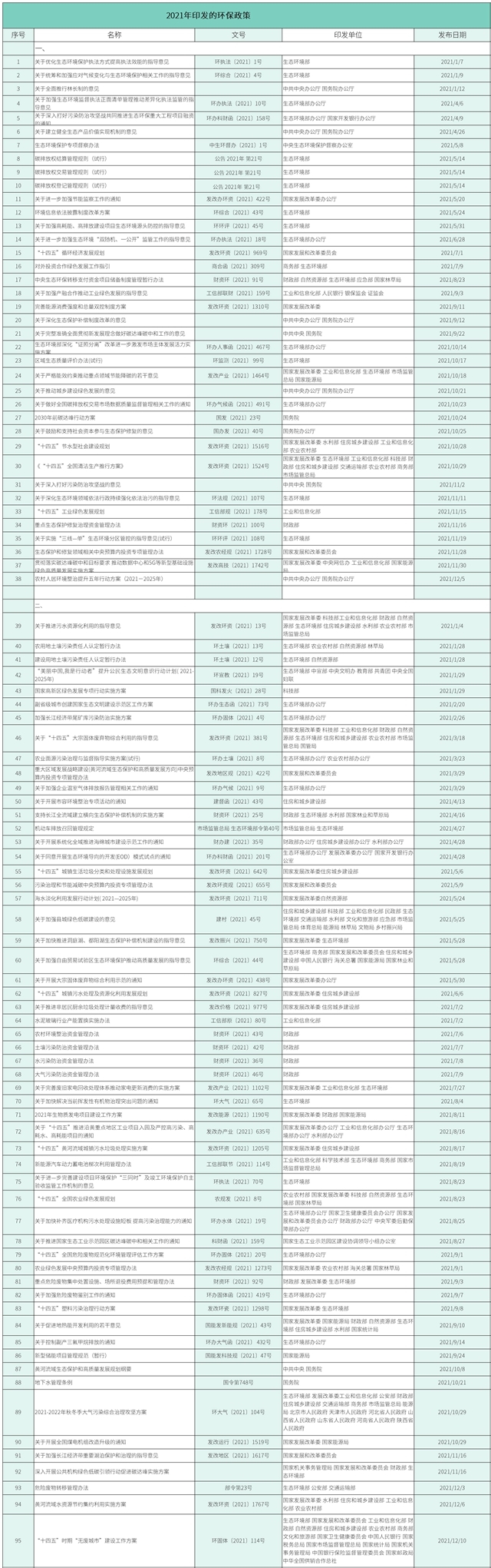 據(jù)環(huán)保在線初步統(tǒng)計,2021年至今(數(shù)據(jù)截至2021年12月20日),已經(jīng)有95項環(huán)保政策法規(guī)出臺。