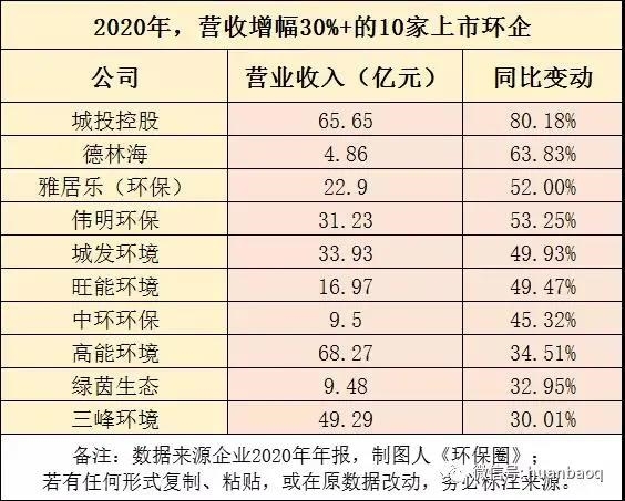 大部分環(huán)保上市公司都發(fā)布了2020年的年報(bào),《環(huán)保圈》也整理了111家上市環(huán)企年報(bào),通過(guò)營(yíng)收、營(yíng)收增速、凈利潤(rùn)、凈利潤(rùn)增幅等幾方面維度,為讀者梳理了2020年環(huán)保行業(yè)的“大數(shù)據(jù)”。