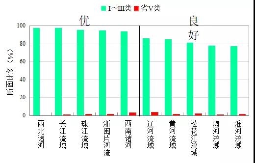 1-11月,長江、黃河、珠江、松花江、淮河、海河、遼河等七大流域及西北諸河、西南諸河和浙閩片河流水質優(yōu)良(Ⅰ——Ⅲ類)斷面比例為85.8%,同比上升1.8個百分點;劣Ⅴ類斷面比例為0.8%,同比下降0.9個百分點。主要污染指標為化學需氧量、高錳酸鹽指數和總磷。其中,長江流域、西北和西南諸河、浙閩片河流和珠江流域水質為優(yōu);遼河、黃河和淮河流域水質良好;松花江和海河流域為輕度污染。