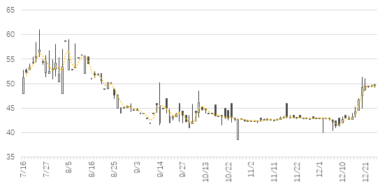 價(jià)格方面,截至12月24日,全國(guó)碳市場(chǎng)掛牌協(xié)議交易平均價(jià)格約45.9元/噸,最高價(jià)61.07元/噸,最低價(jià)38.5元/噸,絕大部分在40到60區(qū)間內(nèi)波動(dòng),總體呈現(xiàn)波動(dòng)降低的趨勢(shì),12月以來隨著履約期臨近,碳價(jià)開始逐步升高,從12月初的約42元/噸回升到50元/噸左右,12月21日大宗交易也出現(xiàn)了46.3元/噸的較高交易價(jià)格。氣候投融資試點(diǎn)工作將著力探索支持全國(guó)碳市場(chǎng)長(zhǎng)期平穩(wěn)運(yùn)行的相應(yīng)手段,推動(dòng)碳市場(chǎng)提供更穩(wěn)定的長(zhǎng)期價(jià)格信號(hào),促進(jìn)減排活動(dòng)的實(shí)施效率,同時(shí)也挖掘碳配額的價(jià)值,為企業(yè)減排活動(dòng)提供更全面的支持。