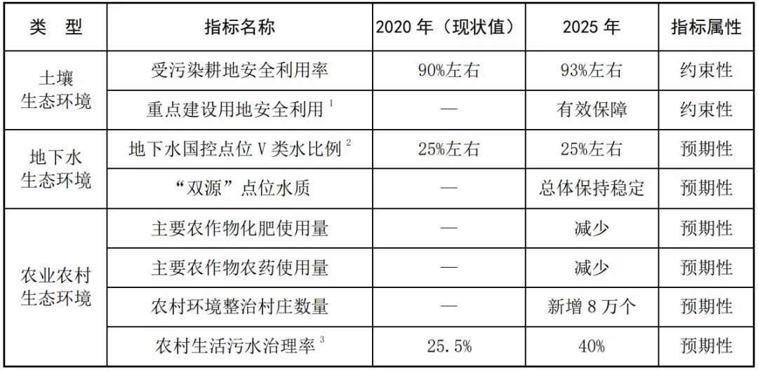 表1“十四五”土壤、地下水和農(nóng)業(yè)農(nóng)村生態(tài)環(huán)境保護(hù)主要指標(biāo)