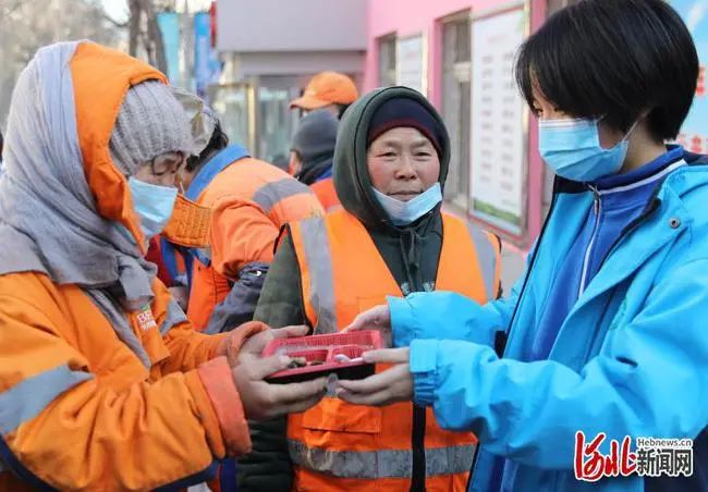 臘八節(jié)來臨之際,承德市民族中學(xué)學(xué)生們將親手熬制的臘八粥送到承德市雙橋區(qū)潘家溝街道潘家溝社區(qū)環(huán)衛(wèi)工人手中,為辛勤的勞動(dòng)者送上寒冬里的溫暖。