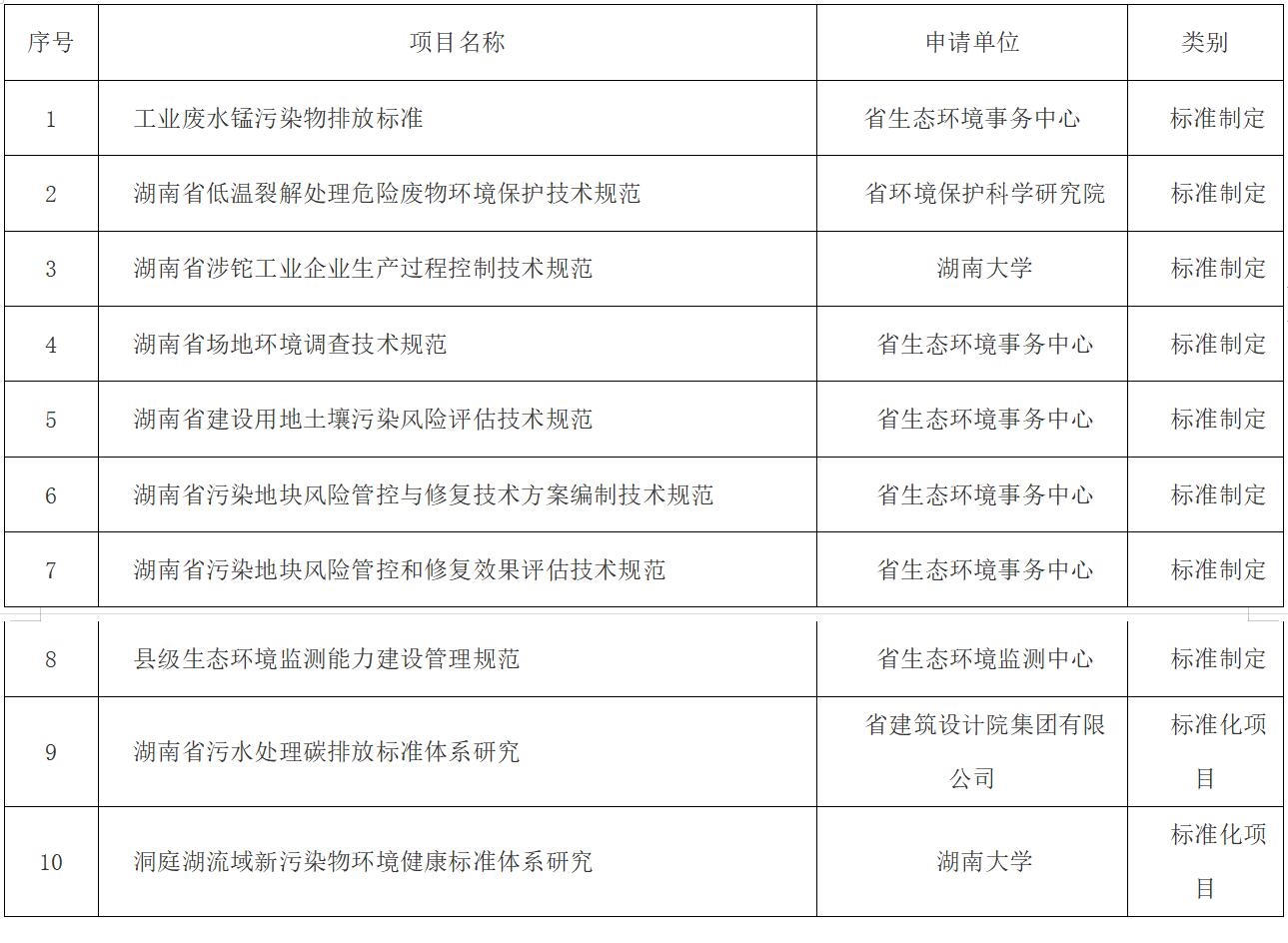 湖南省生態(tài)環(huán)境廳關(guān)于2022年度湖南省地方生態(tài)環(huán)境標(biāo)準(zhǔn)項目評審結(jié)果的公示