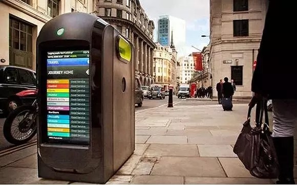 為了解決倫敦日益加劇的廢報(bào)紙回收問(wèn)題而發(fā)明的Techno Pods 新式多媒體創(chuàng)意垃圾箱,也叫報(bào)紙回收站。垃圾箱兩側(cè)還有 LED 屏幕,能夠不斷滾動(dòng)播報(bào)當(dāng)日新聞事件、天氣情況、顯示地鐵信息等。這種設(shè)計(jì)完全顛覆了以往垃圾箱在人們腦海中的印像,使垃圾箱成為城市中不可缺少的傳媒載體。