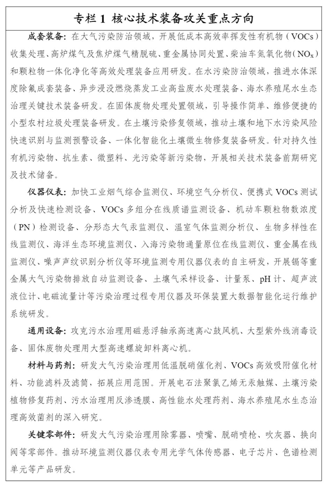 3、聚焦基礎(chǔ)零部件和材料藥劑等卡脖子問題,加快環(huán)境污染治理專用的高性能風(fēng)機(jī)、水泵、閥門、過濾材料、低頻吸聲隔聲材料、綠色藥劑以及環(huán)境監(jiān)測(cè)專用模塊、控制器、標(biāo)準(zhǔn)物質(zhì)研發(fā)。