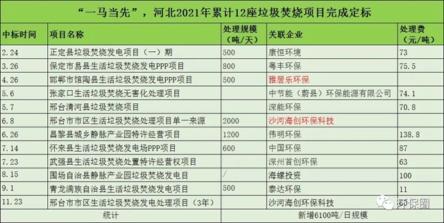 除了數(shù)量眾多之外,河北釋放的垃圾焚燒項(xiàng)目也頗具看點(diǎn),不僅吸引了中節(jié)能、中國(guó)環(huán)保、康恒環(huán)境、深能環(huán)保、偉明環(huán)保、首創(chuàng)環(huán)保等影響力企業(yè)前來(lái)角逐,也有危廢行業(yè)龍頭雅居樂環(huán)保前來(lái)“分羹”,還有剛成立不久的本土企業(yè)“沙河海創(chuàng)環(huán)保科技”收獲訂單。