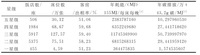 表1:中國(guó)星級(jí)飯店床位能源消耗與碳排放情況