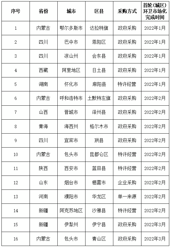 附3:2022年度完成城區(qū)環(huán)衛(wèi)市場化(16個)區(qū)縣完成時間