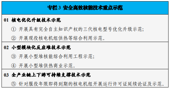圍繞提升核電技術裝備水平及項目經(jīng)濟性,開展三代核電關鍵技術優(yōu)化研究,支撐建立標準化型號和型號譜系;加強戰(zhàn)略性、前瞻性核能技術創(chuàng)新,開展小型模塊化反應堆、(超)高溫氣冷堆、熔鹽堆等新一代先進核能系統(tǒng)關鍵核心技術攻關;開展放射性廢物處理處置、核電站長期運行、延壽等關鍵技術研究,推進核能全產(chǎn)業(yè)鏈上下游可持續(xù)發(fā)展。