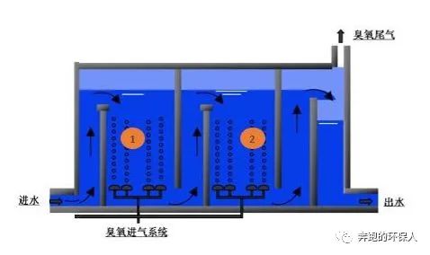 臭氧消毒單元共有32座臭氧接觸池,每條處理線4座。每個(gè)接觸池分兩個(gè)反應(yīng)室,第一個(gè)反應(yīng)室寬8m、長(zhǎng)8m,有效水深6.25m;第二個(gè)反應(yīng)室寬8m、長(zhǎng)5.3m,有效水深6.25m。