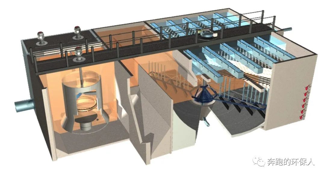 寫到這里,出于小編的敬(BU)業(yè)(YAO)度(LIAN),這里必須插播一個(gè)廣告了??瓷蠄D的這個(gè)沉淀池造型,結(jié)合其“快-慢混合+斜管沉淀、刮泥機(jī)、污泥內(nèi)循環(huán)”的描述,只能說(shuō),這個(gè)沉淀池和蘇伊士的高密度沉淀池非常相似。