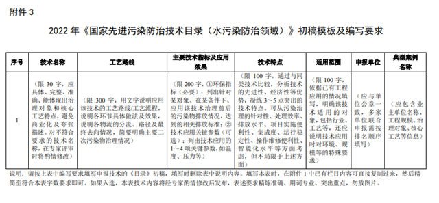 3.2022年《國家先進(jìn)污染防治技術(shù)目錄(水污染防治領(lǐng)域)》初稿模板及編寫要求