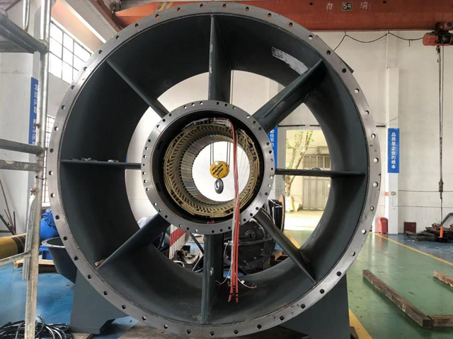 今日上午8時(shí)許,隨著一輛長(zhǎng)達(dá)15米左右的拖掛車進(jìn)入,拉開(kāi)了首批次大型高效高壓軸流潛水電機(jī)發(fā)貨的序幕,該電機(jī)YQS-1050-6-1400KW高壓潛水電機(jī),電機(jī)采用高壓10KV電壓,防護(hù)等級(jí)IP68,電機(jī)單機(jī)重量約14噸。電機(jī)采用銅排轉(zhuǎn)子,有效的提高電機(jī)效率縮小電機(jī)的機(jī)座號(hào)。由于整套電機(jī)為潛水型,對(duì)電機(jī)的密封、防腐、防銹等要求極高,公司團(tuán)隊(duì)對(duì)內(nèi)部還是外部的零配件、固定螺絲、油漆等都進(jìn)行嚴(yán)格的選型和試驗(yàn),確保質(zhì)量的萬(wàn)無(wú)一失。