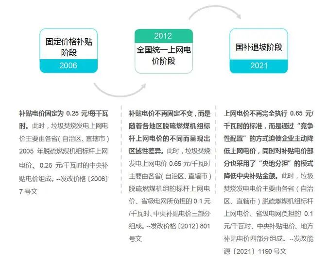 通過對垃圾焚燒發(fā)電電價補貼政策的梳理可以看出,我國垃圾焚燒發(fā)電電價補貼價格主要經(jīng)歷了三個階段的發(fā)展,即: