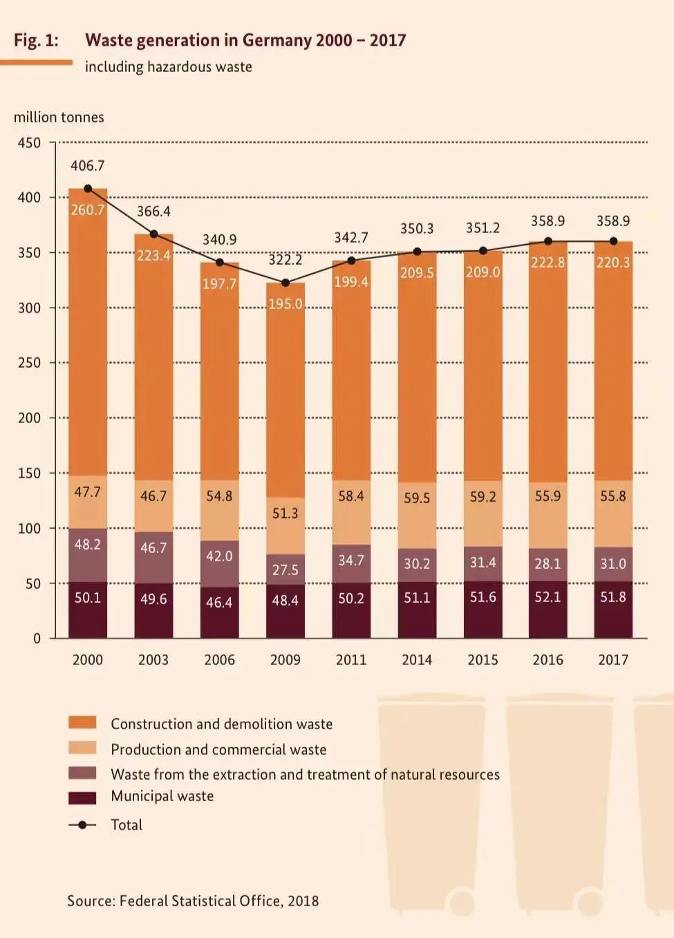 2000年到2017年德國垃圾產(chǎn)生量: