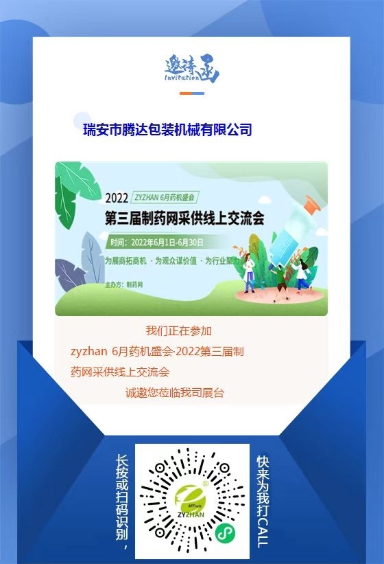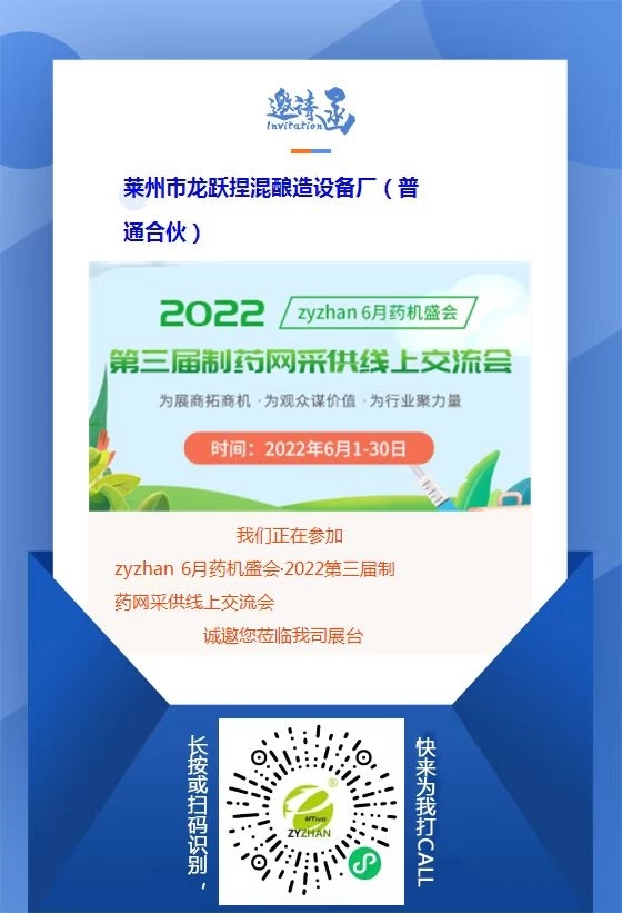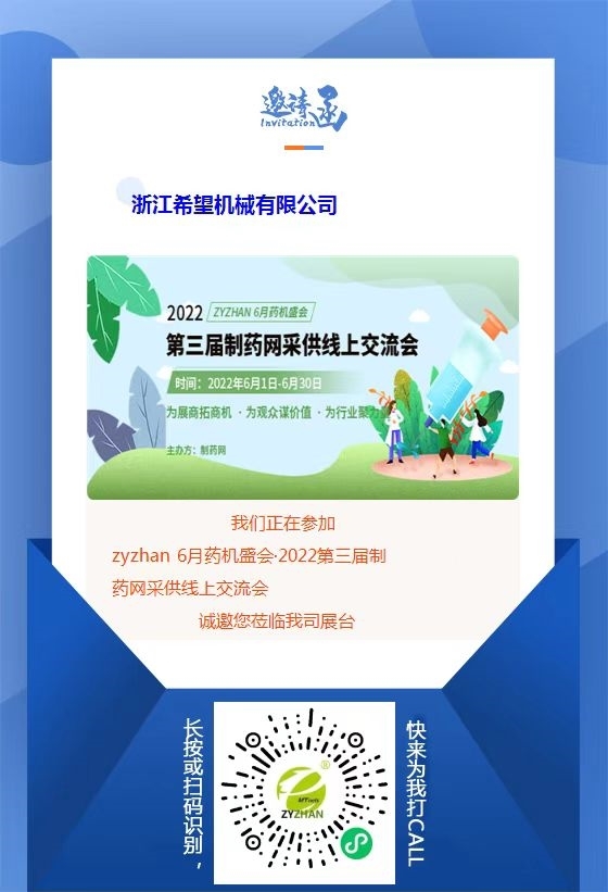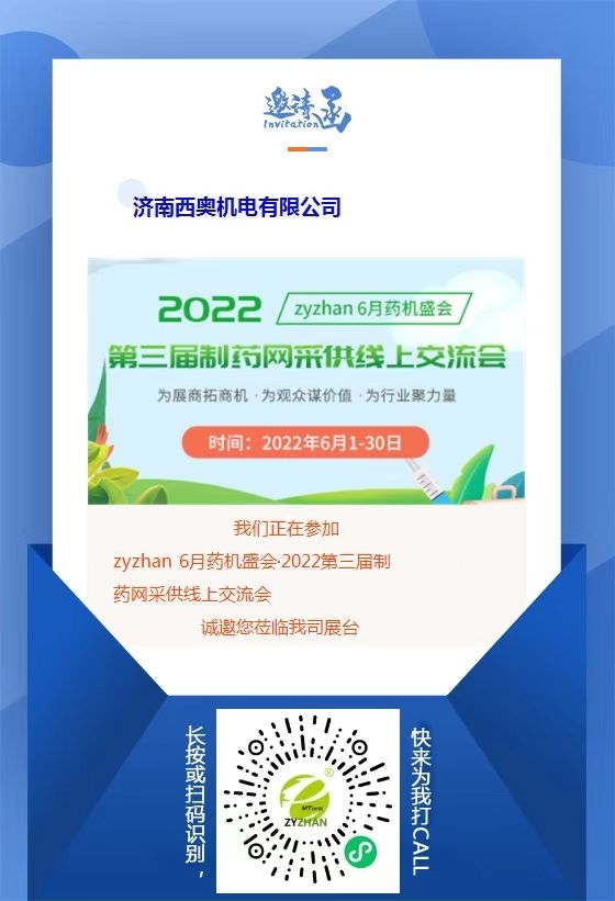 由制藥網主辦的zyzhan 6月藥機盛會——2022第三屆制藥網采供線上交流會(在線展會)(簡稱“zyzhan 6月藥機盛會”)即將于2022年6月1日-6月30日舉行。本次盛會設原料藥機械館、制劑機械館、儀器儀表館、藥品包裝機館、制藥用水/氣設備館、通用機械設備館、其他制藥設備館,目前超百家企業(yè)都已入駐相應展館,正在等待與您相見!