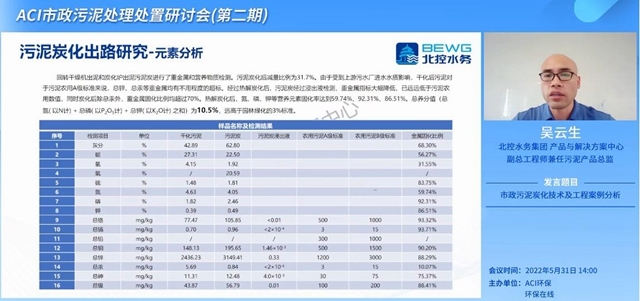 緊接著就是各項技術的“秀”場了,首先與大家屏聊的就是來自水務頭部企業(yè)北控的吳云生副總工程師。就目前的污泥處置路線來說,炭化技術與主流的焚燒相比產生的煙氣更少,污染物濃度更低,碳排放量也有所削減,適用規(guī)模范圍廣且資源化利用途徑多。