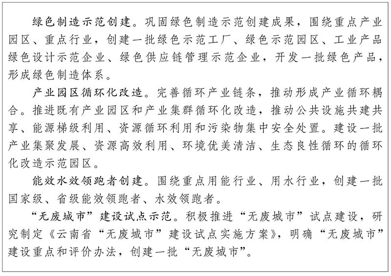 圍繞全省工業(yè)綠色發(fā)展工作重點(diǎn),以提高資源產(chǎn)出率為目標(biāo),大力推進(jìn)昆明、曲靖、玉溪、紅河等地區(qū)共伴生礦產(chǎn)資源綜合利用試點(diǎn)示范,實(shí)施鋼渣、磷石膏、粉煤灰等大宗工業(yè)固體廢物資源化示范工程,全面推進(jìn)生活垃圾分類收集,開展多元化生活垃圾終端處置工程和農(nóng)林廢棄物資源化項(xiàng)目,培育再生資源利用企業(yè),建立可再生資源循環(huán)利用體系,促進(jìn)再生資源清潔化回收,規(guī)?;煤图刍l(fā)展。