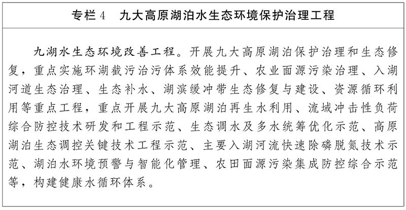 水污染防治。以滇中城市群、九大高原湖泊流域、重要集中式飲用水水源地等為重點(diǎn),積極研發(fā)和推廣改進(jìn)型曝氣生物濾池聯(lián)合處理技術(shù)、低成本深度脫磷除氮技術(shù)、短流程脫氮技術(shù)、高濃度活性污泥處理技術(shù),穩(wěn)步推進(jìn)城鎮(zhèn)污水處理廠提質(zhì)增效。積極研發(fā)推廣自流式、無動(dòng)力、低成本、易維護(hù)的農(nóng)村生活污水一體化處理裝置。積極發(fā)展煤化工、制藥、有色金屬采選冶、造紙等行業(yè)水污染治理離子交換、膜分離、酸化混凝處理、廢水回用等技術(shù)裝備。建設(shè)完善高原湖泊有毒物質(zhì)監(jiān)測(cè)分析預(yù)警系統(tǒng)。
