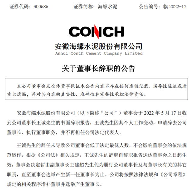 公開資料顯示,王誠出生于1965年3月,安徽淮南人,在擔(dān)任安徽省人民政府副秘書長之前,歷任淮南市副市長、市委常委、常務(wù)副市長,蚌埠市委副書記、蚌埠市市長,安徽海螺集團(tuán)黨委書記、董事長等職。2013年,王誠調(diào)任蚌埠市委副書記,2016年12月任蚌埠市代市長,2017年2月任蚌埠市市長;2021年4月,王誠任安徽海螺集團(tuán)有限責(zé)任公司黨委書記、董事長,任期為2021年5月28日-2022年5月29日。2022年5月17日,安徽海螺水泥股份有限公司(簡稱:海螺水泥)發(fā)布公告稱,其董事長王誠因個(gè)人工作變動(dòng)原因,辭去公司董事長、執(zhí)行董事職務(wù),并不再擔(dān)任法定代表人。董事會(huì)決定暫由王建超代為履行公司董事長及與董事長有關(guān)的其它職責(zé),直至董事會(huì)選舉產(chǎn)生新一任董事長為止。海螺集團(tuán)作為全世界最大的建材企業(yè)集團(tuán)之一,王誠在任期即將結(jié)束前匆匆離職,便已引起外界猜測, 6月13日安徽紀(jì)檢監(jiān)察網(wǎng)公布的“王誠涉嫌嚴(yán)重違紀(jì)違法”一事,更是引起了熱議。據(jù)企查查獲悉,安徽省國資委通過安徽省投資集團(tuán)控股有限公司持有海螺集團(tuán)51%股權(quán),為控股股東,港股上市公司中國海創(chuàng)控股(香港)有限公司通過蕪湖海創(chuàng)實(shí)業(yè)有限責(zé)任公司持有海螺集團(tuán)49%股權(quán),為參股股東。在上市公司層面,王誠任職期間,海螺水泥作為海螺集團(tuán)旗下控股子公司,收購了關(guān)聯(lián)企業(yè)海螺新能源,加快對(duì)光伏儲(chǔ)能項(xiàng)目的投資,又在資本市場頻頻捧場同行定增,甚至直接增持和舉牌,一改此前低調(diào)的行事風(fēng)格。不僅如此,海螺集團(tuán)旗下港股公司海螺創(chuàng)業(yè)備受資本市場關(guān)注。3月30日,海螺創(chuàng)業(yè)分拆海螺環(huán)保在港交所主板上市。5月6日,海螺創(chuàng)業(yè)對(duì)外宣布正在考慮分拆旗下安徽海創(chuàng)綠能環(huán)保集團(tuán)股份有限公司在上交所主板獨(dú)立上市。如若成行,屆時(shí)海螺集團(tuán)將擁有5家上市平臺(tái)。傳統(tǒng)行業(yè)遇發(fā)展瓶頸,加速布局環(huán)保、新能源領(lǐng)域盡管近年來大動(dòng)作不斷,但海螺集團(tuán)仍遭遇了發(fā)展瓶頸,業(yè)績?cè)鲩L基本停滯。高能耗、高排放行業(yè)在“碳達(dá)峰、碳中和”的雙碳背景下,面臨極大的轉(zhuǎn)型壓力。
