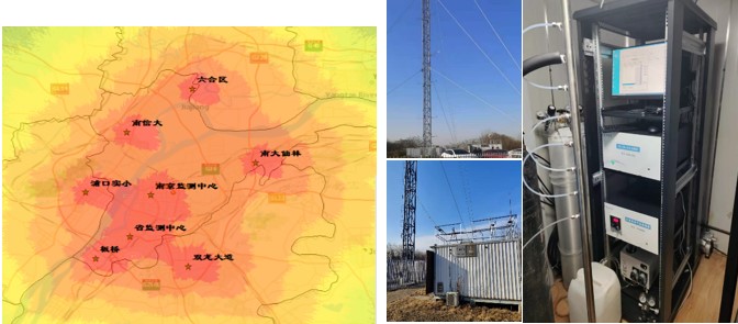 該溫室氣體試點監(jiān)測系統(tǒng)設(shè)在南京大學仙林校區(qū),利用現(xiàn)有觀測塔在75米、50米、25米三個高度進行梯度采樣,實時監(jiān)測主要溫室氣體(CO2和CH4)濃度。該站點點位選址、儀器設(shè)備采樣分析及數(shù)據(jù)質(zhì)控均按照生態(tài)環(huán)境部《碳監(jiān)測評估試點工作方案》要求執(zhí)行,是江蘇省生態(tài)環(huán)境監(jiān)測系統(tǒng)中首個符合城市溫室氣體高精度監(jiān)測點位要求的站點,填補了城市高精度溫室氣體監(jiān)測的空白,并首次實現(xiàn)了溫室氣體的梯度自動監(jiān)測。