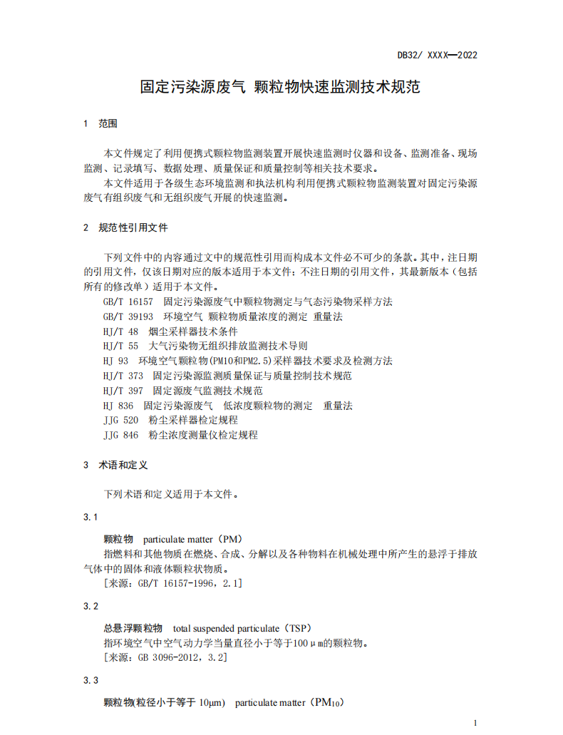 為貫徹《中華人民共和國環(huán)境保護(hù)法》《中華人民共和國大氣污染防治法》《江蘇省大氣污染防治條例》等法律法規(guī),進(jìn)一步規(guī)范江蘇省顆粒物快速監(jiān)測技術(shù)要求,提升大氣污染管控成效,江蘇省生態(tài)環(huán)境廳組織起草了江蘇省地方環(huán)境保護(hù)標(biāo)準(zhǔn)《固定污染源廢氣 顆粒物快速監(jiān)測技術(shù)規(guī)范(征求意見稿)》,并于近日向相關(guān)單位征求意見。