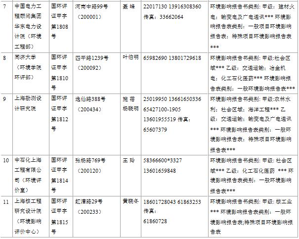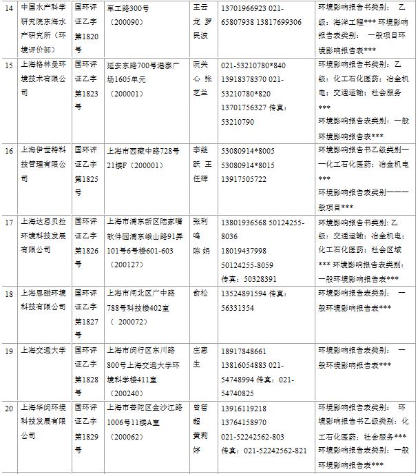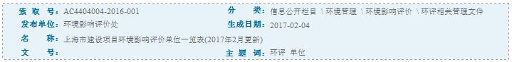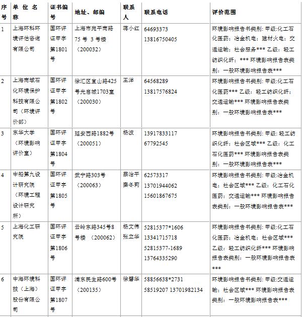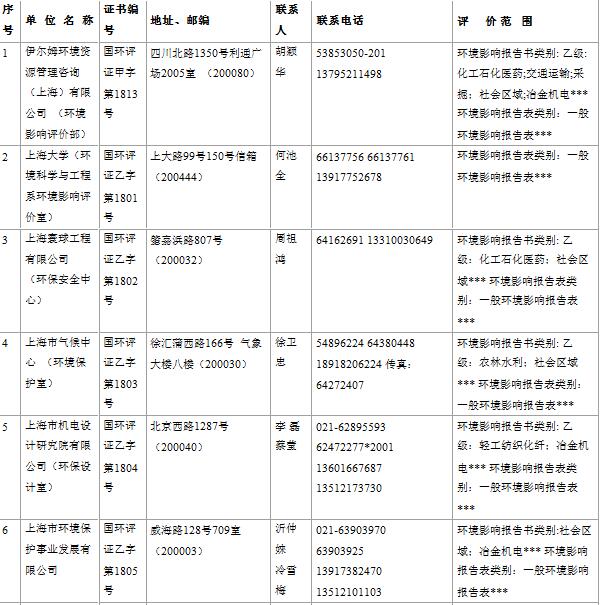 上海市建設項目環(huán)境影響評價單位一覽表(2017年2月更新)