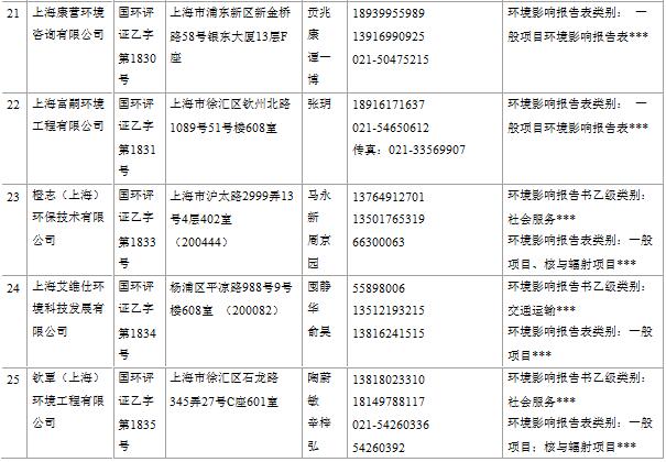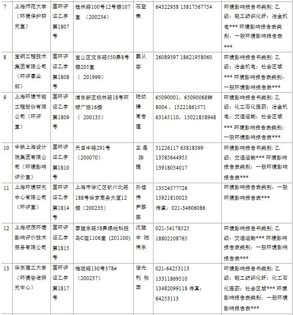 上海市建設項目環(huán)境影響評價單位一覽表(乙級)(2017年2月更新)